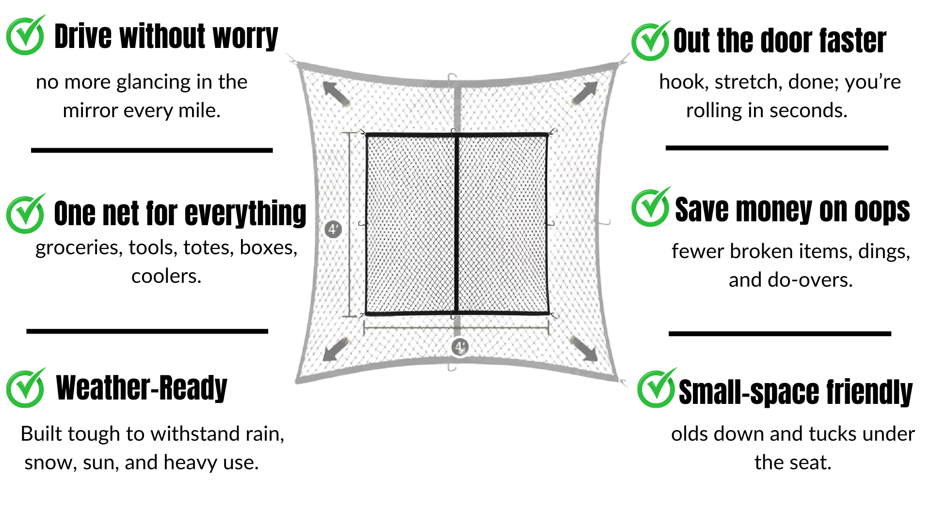 Forget one-size-fits-none nets. This is the last cargo net you'll ever need.